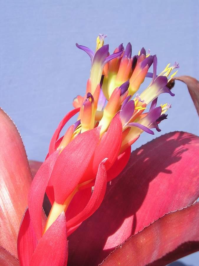 Neoregelia carolinae is known by many, having been in cultivation for many years. Here we had a plant from Margaret Butcher, grown from seed collected by Antonio Miranda from the wild in Espirito Santo. The centre leaves at maturity in these plants ranged from shades of cyclamen pink to iridescent fuchsia pink-purple. In fact colours that are discernable to the female eye but hard to describe.
