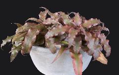 In Geoff's words ... "I guess it's 'new' to newcomers, but you undoubtedly have C. acaulis var. ruber, one of the first, hardiest and most prolific Crypts in Aussie collections. Strangely, there's no photo on fcbs.org/. possibly because this species variety is seldom found in U.S.A. collections where hybrids tend to dominate. Botanically 'acaulis' means little or no stem, which applied to original field-collected specimens such as 'Cafe au Lait' and 'Timothy Plowman' but later stoloniferous clones were found, such as 'Cabo Frio Cabbage' and 'Whirligig'. The 'ruber' refers to the reddish leaves in bright light."