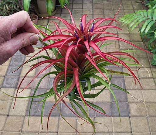 Andrew Flower ... "I got a "Tillandsia abdita Costa Rica" from Tropiflora in 1994, attached pic of it flowering in 2007. Also got a "Tillandsia abdita Mexico" in the same shipment."