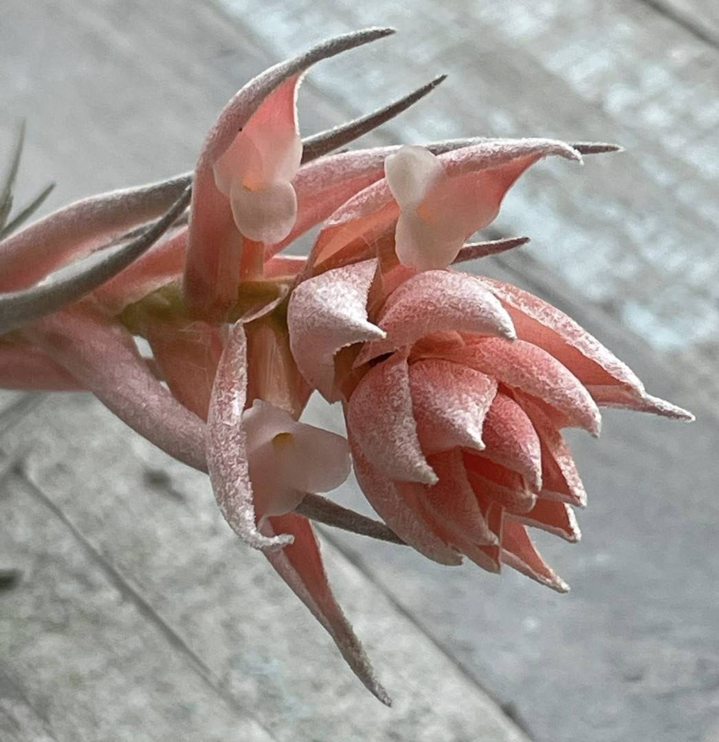 Dale Dixon ... "Here is Tillandsia sp. aff. minasgeraisensis. We’ve discussed this one before. It's ex Chris Larson. The inflorescence on mine aborted about the time we were discussing it. It went on to produce three offsets and they've flowered this year."