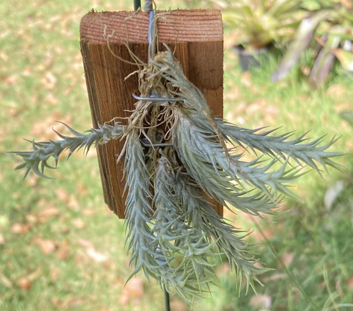 My second plant from Lieselotte has just flowered and it is brown as the photo shows. Len tells me that Lieselotte has hundreds of Tillandsias everywhere. I now wonder whether she sent me a Peruvian collection AND a Bolivian collection at my request for two T. tricholepis v. macrophylla. Or is Eric right in suggesting that plants that look like loliacea but flower like T. tricholepis are in fact T. spiralipetala.