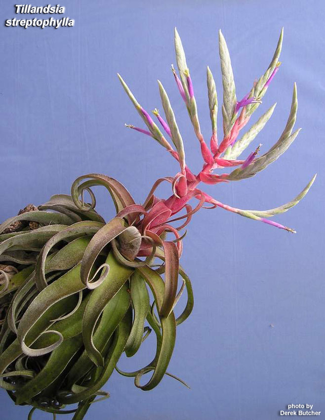 Here however, we are concerned primarily with a small group of species within a larger assembly of atmospheric Tillandsia species known popularly as air plants. Atmospheric Tillandsia are species that manage to survive in what are intolerable sites for many other vascular epiphytes. The word vascular in botany includes all “higher” plants, those with water conducting tissues such as ferns, fern allies and all flowering plants.