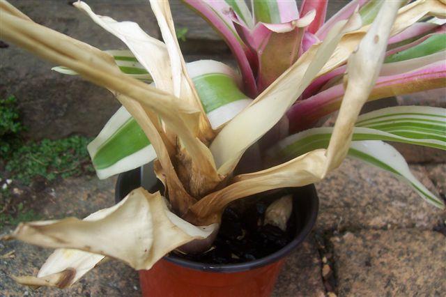 I have also found Albino pups sprouting from Aechmea Lucky Stripes. I find it very interesting that such pups can mature and usually stay very healthy, provided they remain attached to the parent plant.