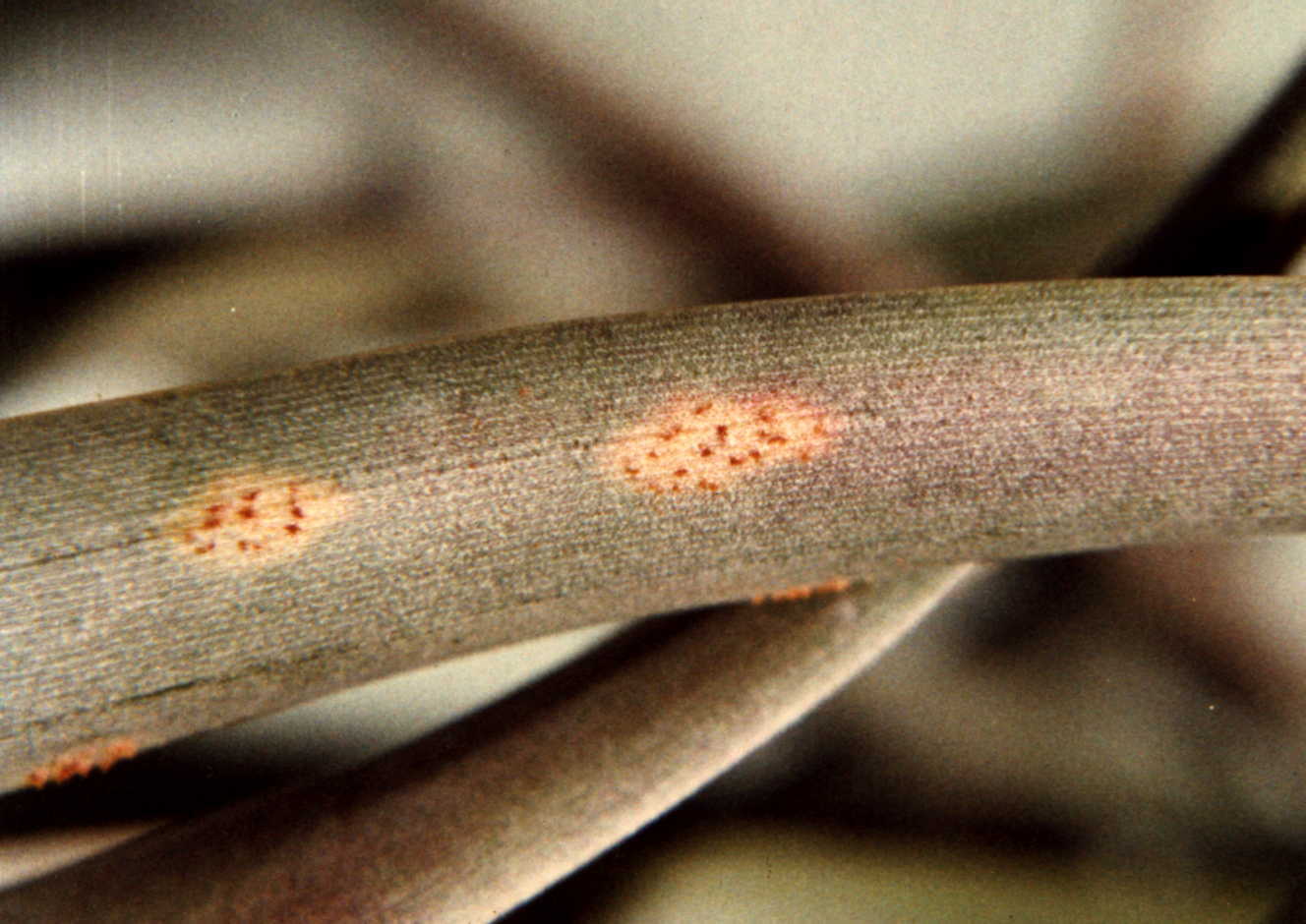 3. The symptoms vary of course. Puccinia tillandsiae, for example, often forms non-erumpent (blister-like) spots on the tillandsia leaves. These are readily observed against a bright background such as a bright day.