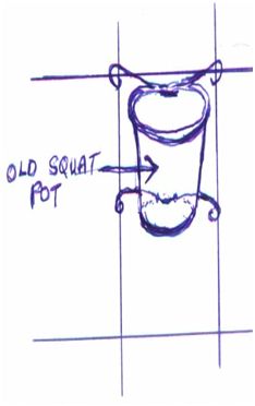 I employed a piece of steel reinforcing mesh about 1.3m wide x 2.1m long as a frame, and used 1.57 gauge galvanized tie-wire to form holders for the pots. I made a noose around the top of an old squat pot, with enough allowance to extend to the bars, and then put a smaller piece of wire through the bottom of the pot to hold it taught (see diagram and photo below). Then I put my plants (which were in their own pots) inside the squat pots. You can customize the spacing of the pots to allow room for long-leaved plants, and, by using this two-pot method, it allows for easy turning or removal of your plants.