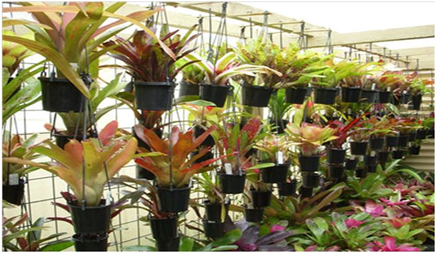 Apart from the plants too large to suspend (these are still grown on benches), I grow my smaller plants (10 cm and 13 cm plastic pot sizes) suspended from roof timbers above the benches using plastic pot hangers, of the type sold at our bromeliad society meetings. I have been doing this now in excess of ten years and can say that apart from there being a complete absence of rot (even during long periods of wet, cold weather ), the plants seem to love these conditions and are growing better than they ever did when on benches.