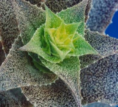 Some horticulturists consider many bromeliads, including Orthophytums, as semi-succulents or succulents. Penrith Goff, of the S.E. Michigan Bromeliad Society, has answered the question “What is a Succulent Bromeliad?” “Logically, any bromeliad capable of storing large amounts of water in the leaves is a succulent. Thus it is fair to call the atmospheric Tillandsias, the air plants, succulent, as J. Riha and R. Subik do in their book, The Illustrated Encyclopaedia of Cacti and Other Succulents (London: 1992). However, the term succulent has become so closely associated with earth-bound desert dwellers that we will use the term for those terrestrial bromeliads which have developed succulence as an adaptation to a hostile climate (sunny landscape) to which they have adapted. In general they do not develop the degree of succulence which is common to agaves and aloes, yet there are many which can easily be mistaken for these because the plant structure is so similar.”
