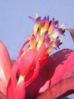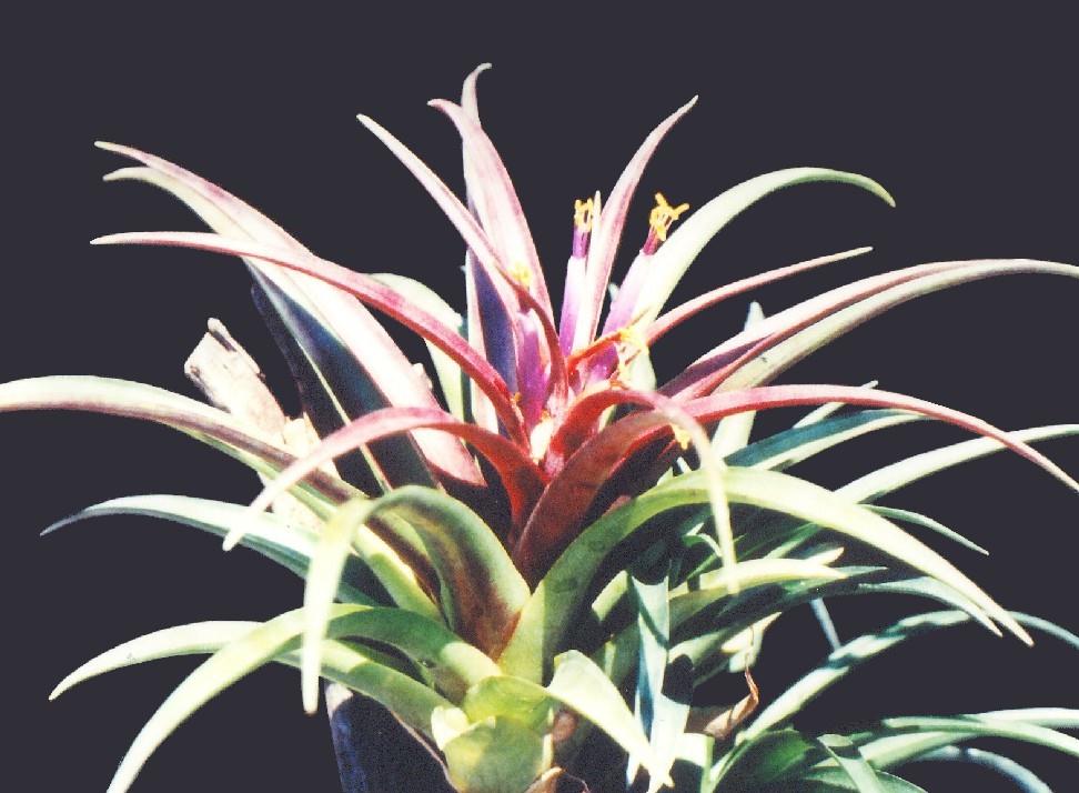Neoregelia carolinae is known by many, having been in cultivation for many years. Here we had a plant from Margaret Butcher, grown from seed collected by Antonio Miranda from the wild in Espirito Santo. The centre leaves at maturity in these plants ranged from shades of cyclamen pink to iridescent fuchsia pink-purple. In fact colours that are discernable to the female eye but hard to describe.