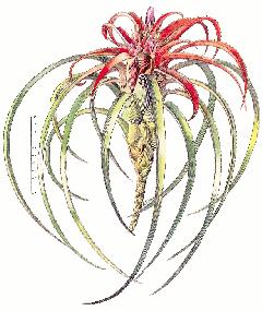 Colin Waterman brought in a Tillandsia fasciculata with goo in the inflorescence. He was more interested in the goo whereas I was more interested in the name! Bill Treloar was quite sure the plant had been kept on the dry side and coming from Bute he should know about such things. There are several vriesias and guzmanias known for their gooey flowers and there may be links to malfunctioning nectar glands. This is generally water soluble anyway so if you have a spare bucket of water! One way to tell a Tillandsia fasciculata is that its branches are fasciculate – like how your fingers extend from your palm. In other words roughly from the same point on the stem. T. rodrigueziana, ( true name for Colin Waterman’s plant ) on the other hand has a central stem where the branches branch off at intervals. The flat side of these branches are at right angles to the central stem.