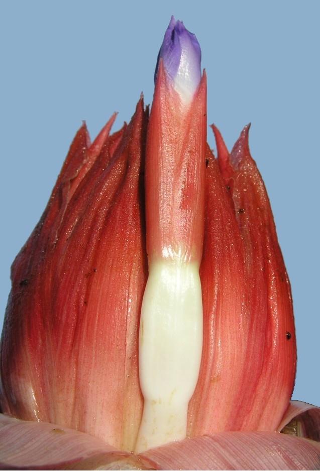FLORAL BRACTS sublinear, apex obtuse, slightly cucullate and inconspicuously apiculate, 4.5 x 1.5 cm, entire, ecarinate, membranaceous, reddish, slightly brown-lanate toward apex, equaling the sepals.