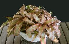 In Geoff's words ... "I guess it's 'new' to newcomers, but you undoubtedly have C. acaulis var. ruber, one of the first, hardiest and most prolific Crypts in Aussie collections. Strangely, there's no photo on fcbs.org/. possibly because this species variety is seldom found in U.S.A. collections where hybrids tend to dominate. Botanically 'acaulis' means little or no stem, which applied to original field-collected specimens such as 'Cafe au Lait' and 'Timothy Plowman' but later stoloniferous clones were found, such as 'Cabo Frio Cabbage' and 'Whirligig'. The 'ruber' refers to the reddish leaves in bright light."