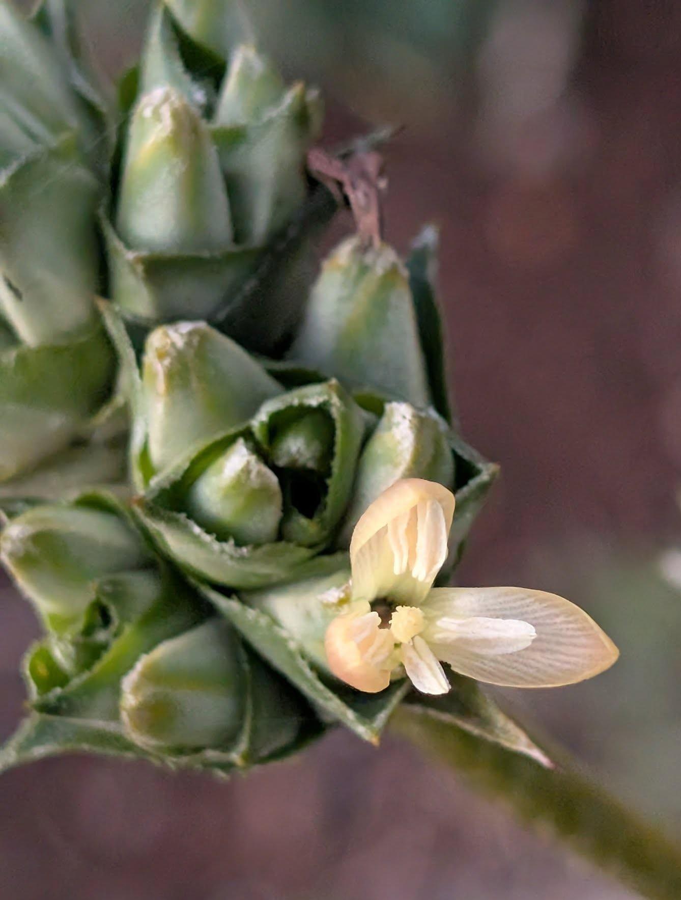 Floral bracts broadly ovate, apiculate, to 16 mm long, much exceeding the immature sepals, serrulate, coriaceous, faintly nerved, minutely and obscurely pale-lepidote, carinate.
