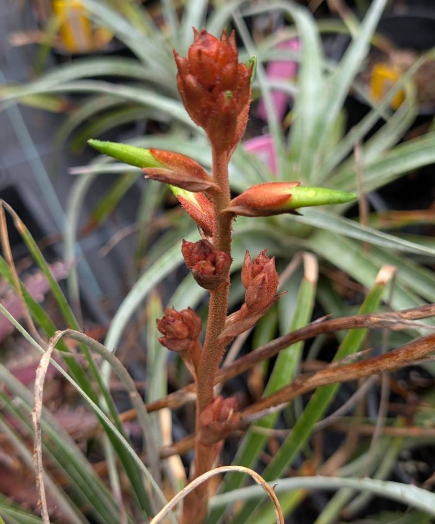 Flowers 11 cm long, virtually erect to horizontal, usually secund, with the exception of the petals covered with ochre-brown to russet starlike hairs.