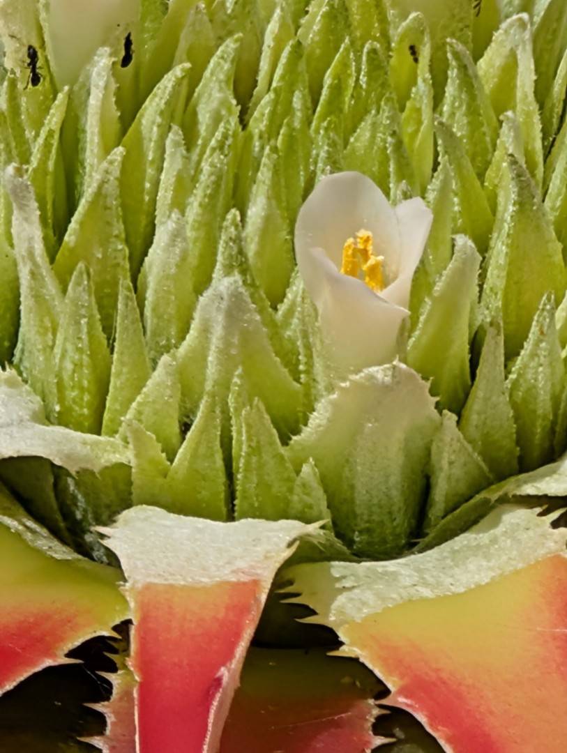 Inflorescence sunk in the center of the rosette;