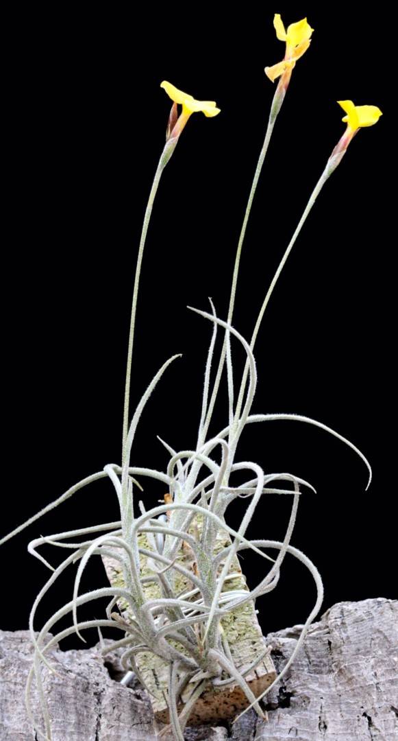 From BCR - "Distributed by Derek Butcher in Australia as WT10234. However it differs from the plant as recorded in Austria as Tillandsia virescens and now has this cultivar named after Assoc-Prof. Dr. Walter Till of Vienna University. Plant offsets freely, each individual plant is up to 125mm long, which includes the old dried base / stem. Leaf blades are 45mm to 55mm long and about 2mm to 3mm wide. Flower spikes are between 65mm to 110mm in length and yellow petal blades measure 8mm to 12mm wide. From Argentina.