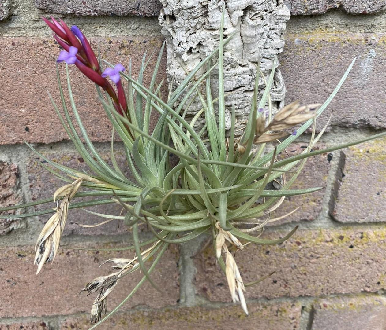 PLANTA: breve caulescentibus, gregaria, florens usque ad 20cm longa. FOLIA: suberecta, dense polysticha, ad 11cm longa, sordido-viridia. VAGINAE: indistincte limitatae, ad 15 mm longae, 9mm latae, rugosae, dense imbricatae, ad basim glaber. LAMINAE: anguste triangulatae, acutae, ad 85mm longae, supra vaginam ad 6mm latae, valde subtubulare canaliculatae, utrimque dense subappresso-lepidotae. SCAPUS: usque ad 75mm longus, teres, glaber, leviter curvatus, viridus, 1.5mm diametiens. BRACTEAE SCAPALIS: suberectae, anguste lanceolatae, basales ad 20mm laminatae, superiores apiculatae, apices subdense lepidotis, nervatae, viridiae vel modice rosaceae, breviora quam internodia. INFLORESCENTIA: simplex, laxe subpolysticha 4-5 florae, 35-45mm longa, rhachis geniculatis. BRACTEAE FLORALIS: suberectae, anguste lanceolatea, longe acuminatae et leviter incurvatae, 15-24mm longae, ad 6mm latae, coriaceae et late hyalino-marginatae, nervatae, ecarinatae, tantum ad apices indistincte, disperse lepidotae, roseatae. FLORES: subsessilis, erectis, ad 26mm longis. SEPALA: lanceolata, acuminata, 13-18mm longa, glaber, rosacea, posteriore valde carinata et usque ad 6mm alto-connata, multo breviores quam bracteis floralis. PETALA: ad 25mm longa, lineare-tubulata, ad basim albida, superiore et lamina coeruleo-violacea, recurvata. STAMINA: albida, applanata, 12mm longa, in tertiam superiore transversale plicata, ANTHERAE: 3mm longae, subbasifixae. STYLUS: aequilonga quam stamina, teres, stigmata indistincte minuta, glandulosa. OVARIUM: oviformum, 5mm longum, viridium.
